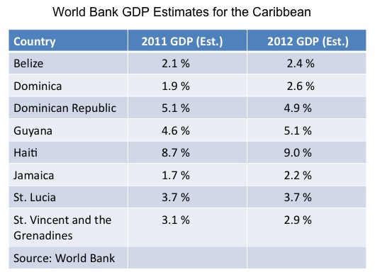 The Caribbean grew at only a 3.8 percent clip last year, although that was a marked improvement from 2009’s 0.5 percent increase. According to the report, economic activity in the region should improve to 4.1 percent this year, due in large part to growth in the Dominican Republic and reconstruction in Haiti.