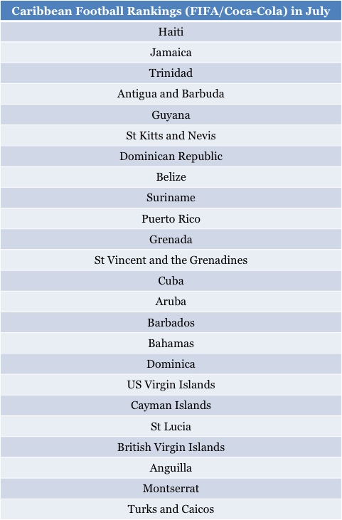 The next-highest ranked Caribbean team is Trinidad and Tobago, which jumped tow spots to 80th in the world.