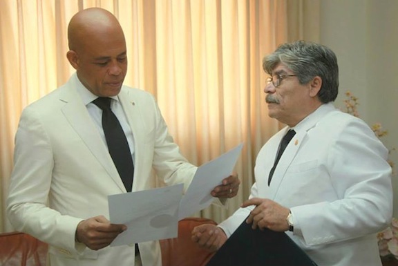 Above: Haiti President Michel Martelly and El Salvador Ambassador to Haiti Carlos Alberto Calles (Photo: OP Haiti)
