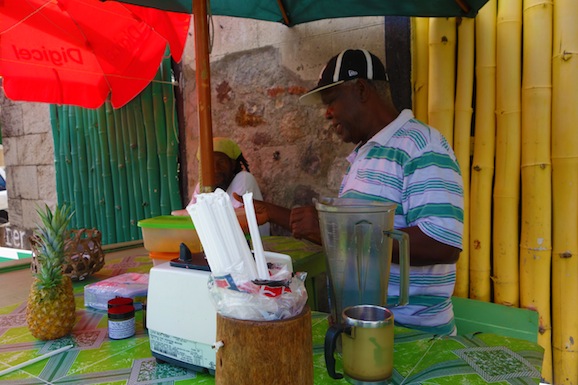 Roseau is a rather small city, but it’s not without distinct pleasures and hidden charms : old bars, small boutiques and, on a corner near the port, this colourful juice stand.