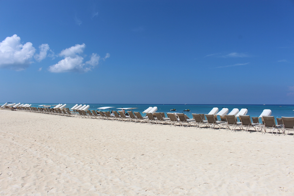It is Seven Mile beach, one of the best stretches of sand anywhere in the hemisphere, where you simply raise a flag and within a minute a waiter is taking your order for a painkiller. Or two painkillers.