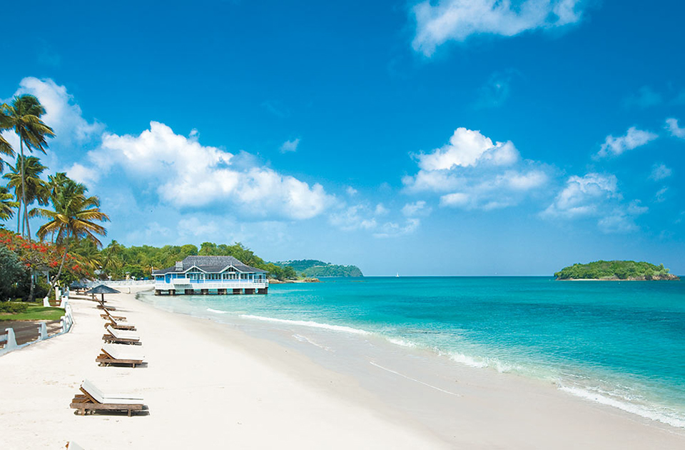 The latest upgrade? The new Beachfront Crystal Lagoon Suites at the Sandals Halcyon Beach resort in St. Lucia.