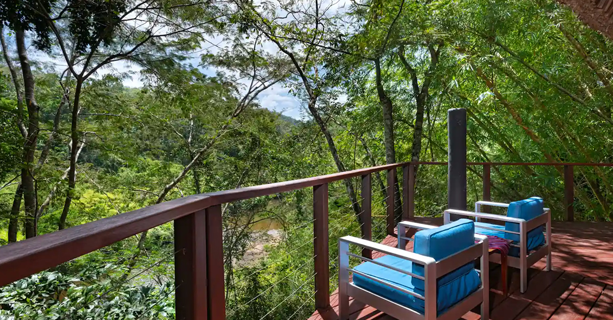 Deep in the Macal River Valley, the Tree Top Villas at The Lodge at Chaa Creek blend luxury and wilderness in perfect proportion. Each one rises above the rainforest canopy, framed by broad verandas and open-air showers surrounded by orchids and vines.